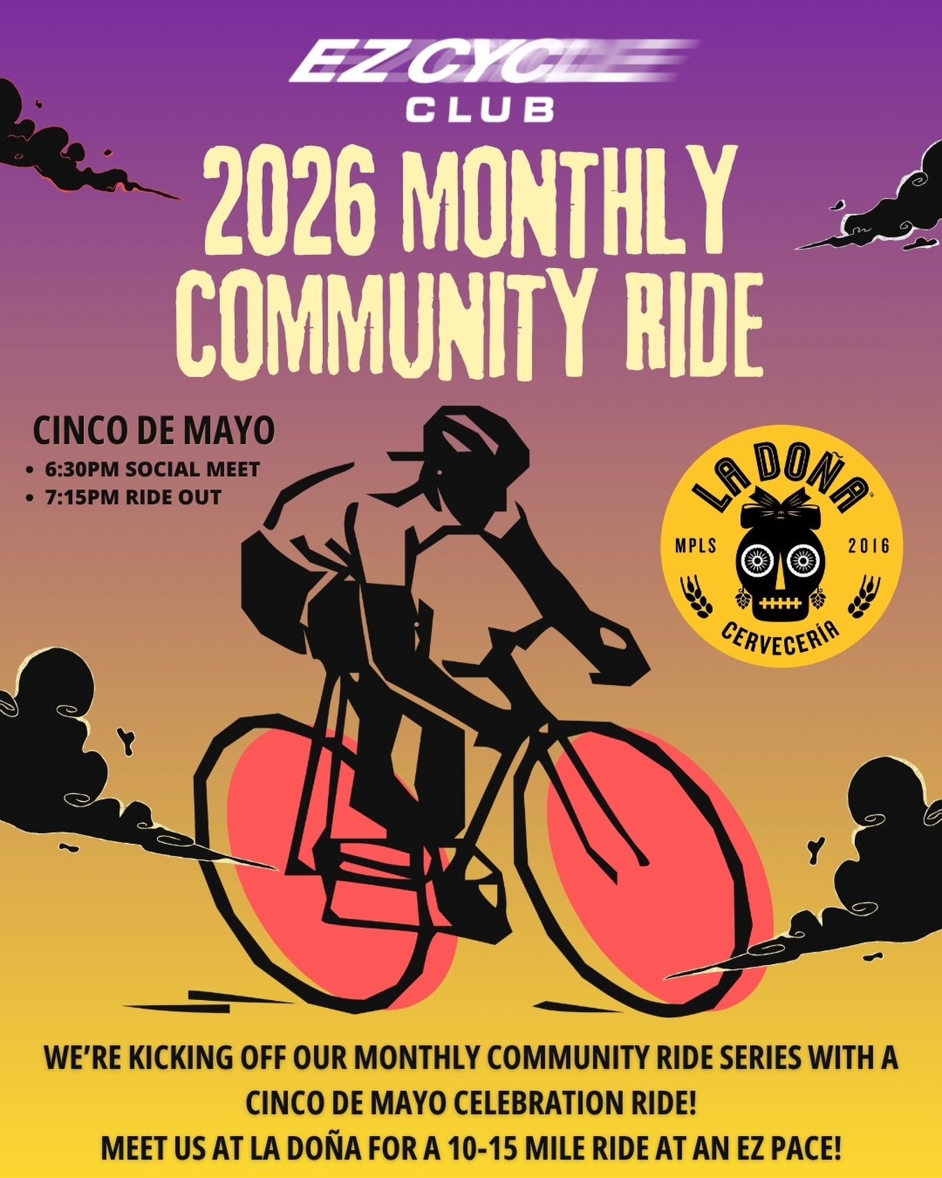 EZ Cycle Club monthly ride series opener celebrating Cinco de Mayo in partnership with La Doña Cervecería.
